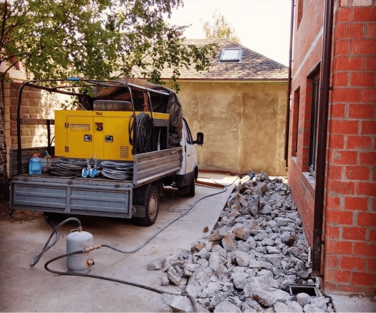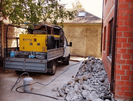 Возможности применения XAS 97 — обширны, и охватывают как строительство, так и ремонтные операции. В частности, демонтаж бетонной стяжки нередко выполняется такими инструментами, как перфораторы или отбойные молотки. Отбойников к компрессору можно подключить от 2 до 5 штук, если это, например, изделия типа МОП-2, 3 или 4 производства ТЗК или ТЭМЗ. Если требуется разборка открытой части фундамента, содержащей армированные элементы, то преимущество отдается бетоноломам БК, имеющим большую ударную силу. Длительность работ напрямую зависит от качества и прочности бетона — демонтаж материала из обычной сухой смеси, соответственно, легче, чем из основы, включающей в себя гравий, известняк и другие добавки. Преимущество автокомпрессора Атлас Копко XAS 97 в том, что, вне зависимости от продолжительности процесса, пневмоинструменты всегда будут обеспечены нужным потоком сжатого воздуха. При максимальной мощности, расход топлива на этом агрегате — 8,1 кг/ч, и если учесть, что он не постоянно работает в таком режиме и на холостом ходу потребляет минимальные 3,6 кг/ч, то интервал между заправками составляет не менее 12 часов.