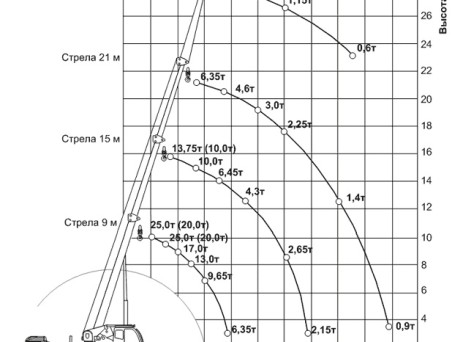 - Вылет стрелы21 метр