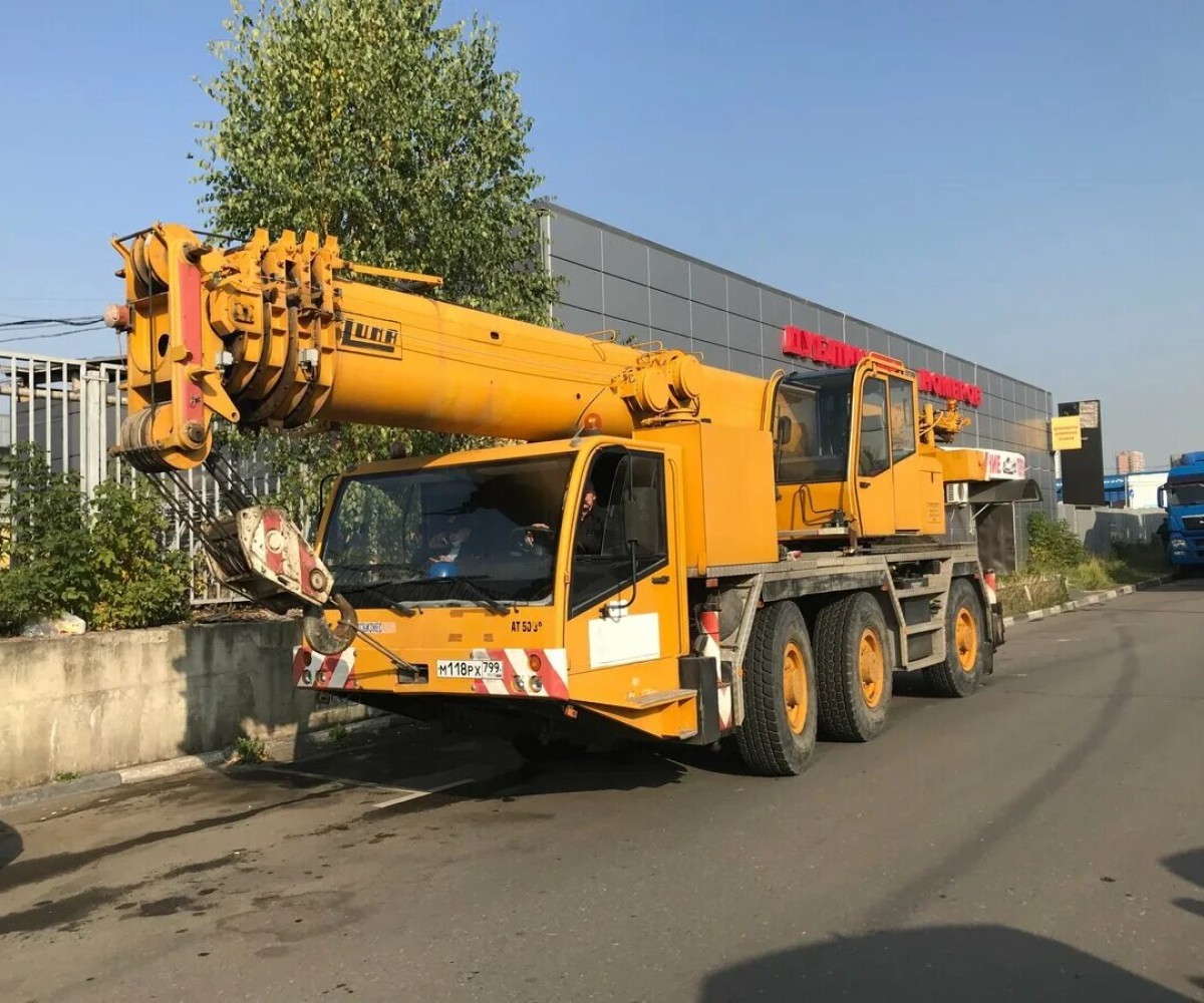 - Грузоподъемность: до 50 тонн, что делает кран универсальным для решения различных задач, от работы на строительных площадках до сложных логистических операций.