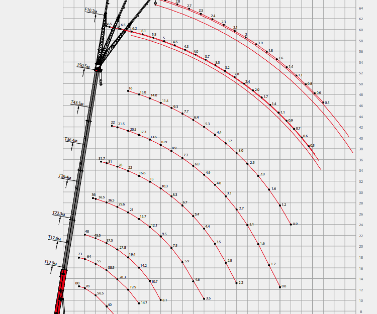 Вылет стрелы50,5 метров