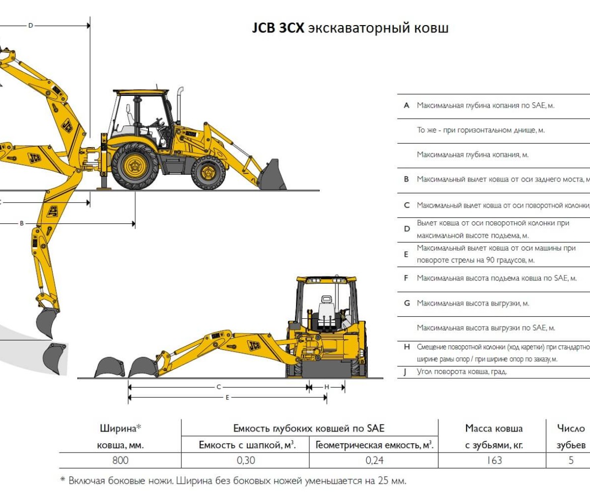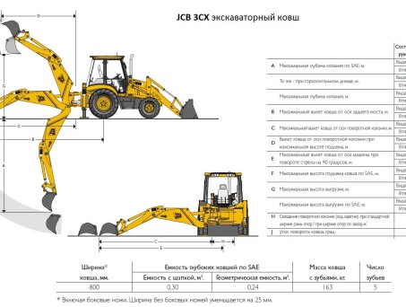 В базовой комплектации JCB 3CX укомплектован ковшом шириной 60см. В зависимости от типа работ, есть возможность заказать аренду в дополнительным навесным оборудованием: