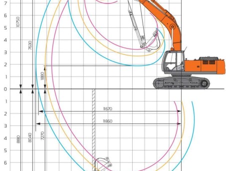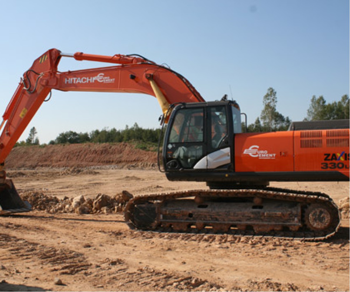 Гусеничный экскаватор Hitachi ZX330 отличается особо сильной конструкцией для использования в самых тяжелых условиях. Эта модель обладает предельной глубиной копания до 7 метров. В базовой комплектации используется ковш, объемом 1, м3. Также есть возможность заказать данную машину с гидромолотом.
