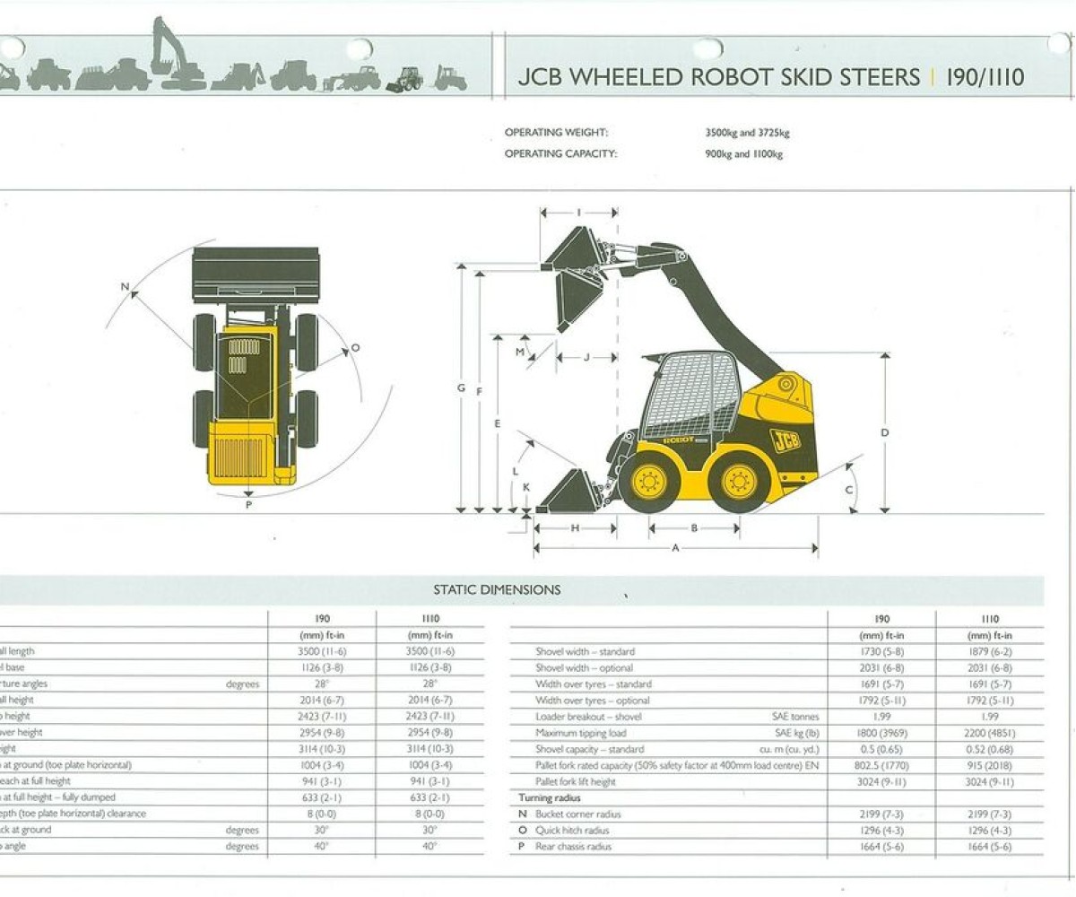 JCB 190 - это компактная модель мини-погрузчика с бортовым поворотом, способная поднять до 862 кг груза вертикально. Он является одним из самых малогабаритных в своем классе.